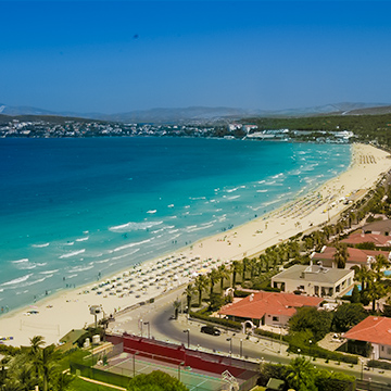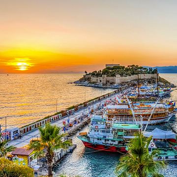 Kuşadası, mot signifiant « île aux oiseaux » en français, est une ville et un port de Turquie sur la mer Égée, à 85 km au sud d’Izmir, dans la province d’Aydın où s’arrêtent en escale des paquebots du Monde entier. À l’époque ottomane, la ville est aussi connue sous le nom de Scalanova par les marchands italiens qui y font commerce. C’est une importante station estivale à proximité des sites d’Éphèse, de la Maison de la Vierge Marie, Pamukkale, Milet, Didymes et Priène.
